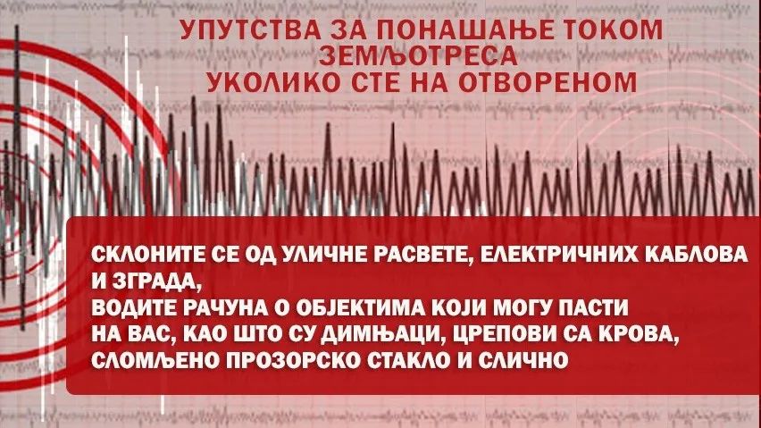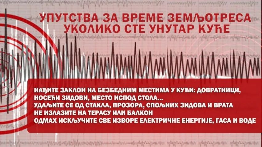 14 Feb KAKO SE PONAŠATI U SLUČAJU ZEMLJOTRESA? Posted at 16:51h in Društvo i ostale vesti by cuprija.net 0 Comments 0 Likes Share MUP Republike Srbije objavilo je uputstva kako da se ponašamo u slučaju zemljotresa.