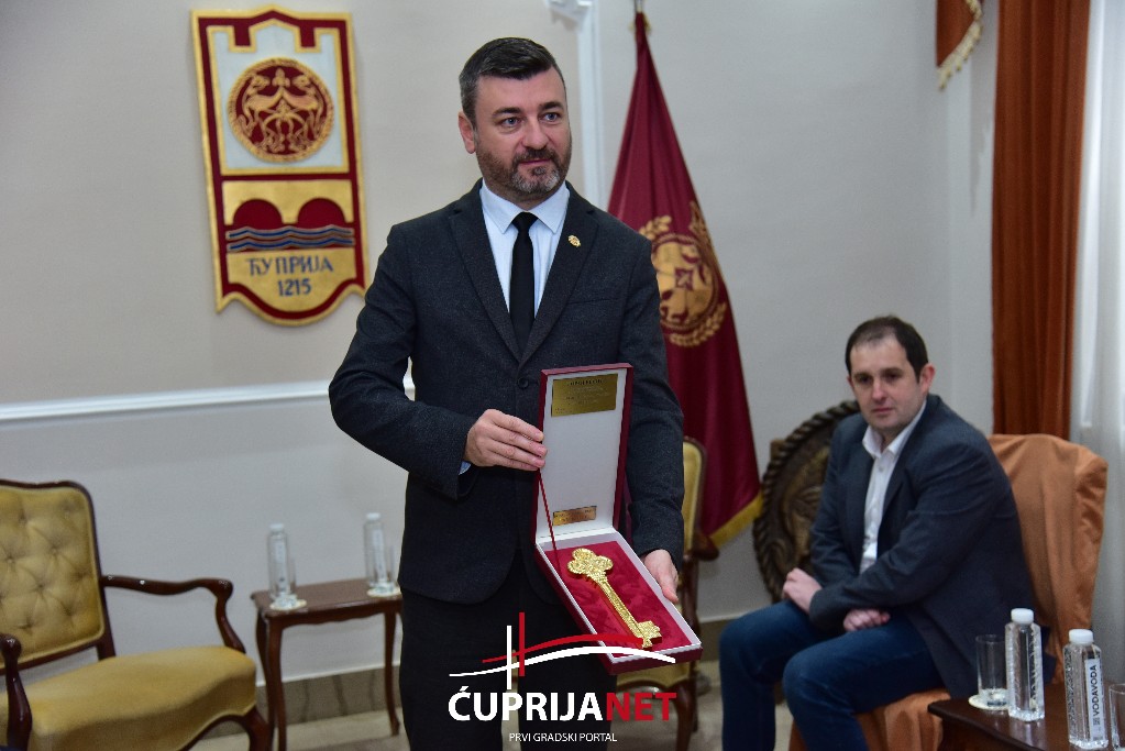 Ministar Vesić je počasni građanin Ćuprije. Zbog obaveza 13. oktobra nije prisustvovao svečanoj senici Skupštine opštine pa mu je ključ grada uručan danas.
