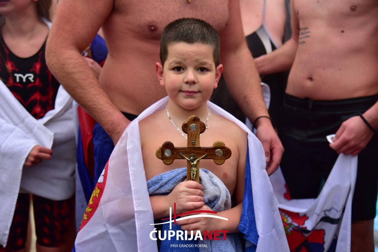 Na bogojavljenskom plivanju za Časni krst u Ćupriji, prva do krsta stigla je Nikolina Urošević.